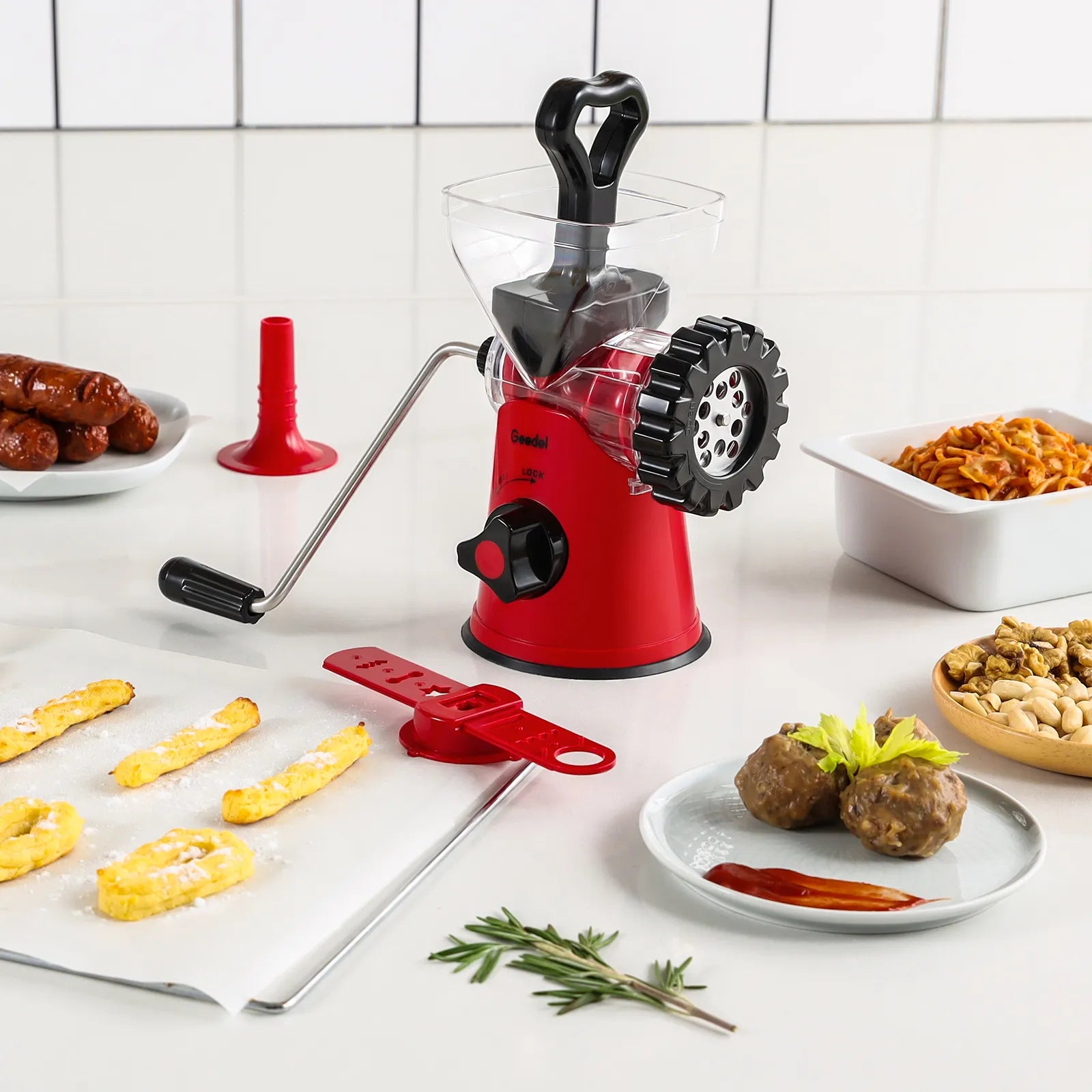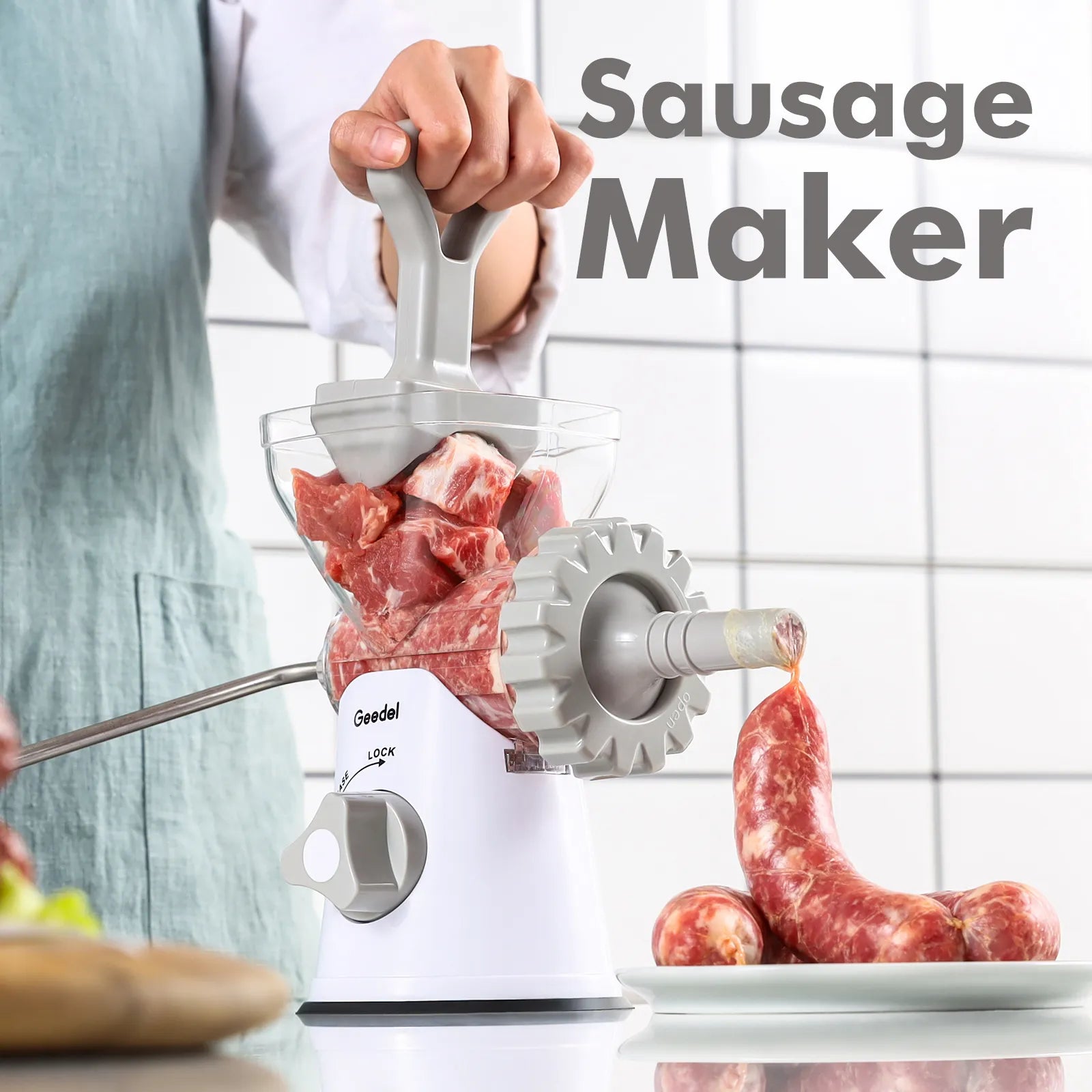Hace que cocinar sea sencilloMolienda uniforme en segundos: ideal para salchichas y hamburguesas con la picadora de carne manual Geedel.