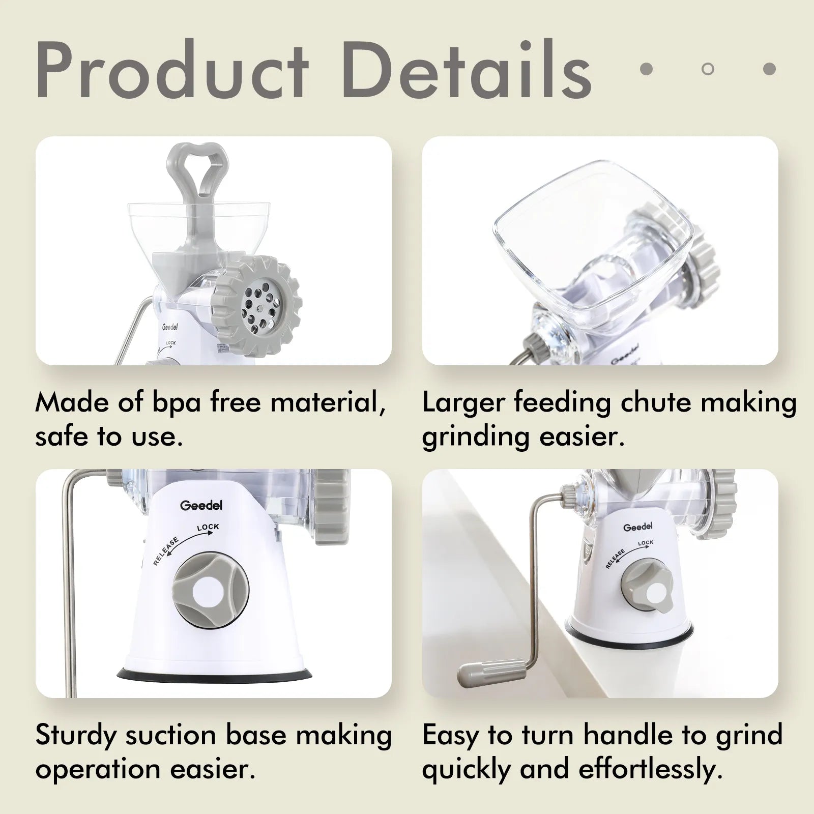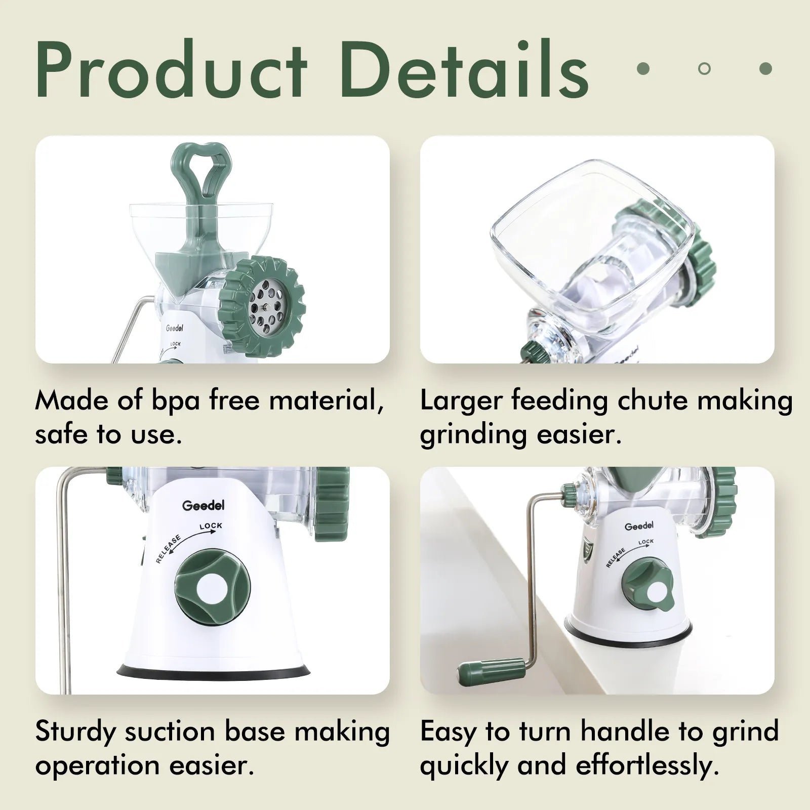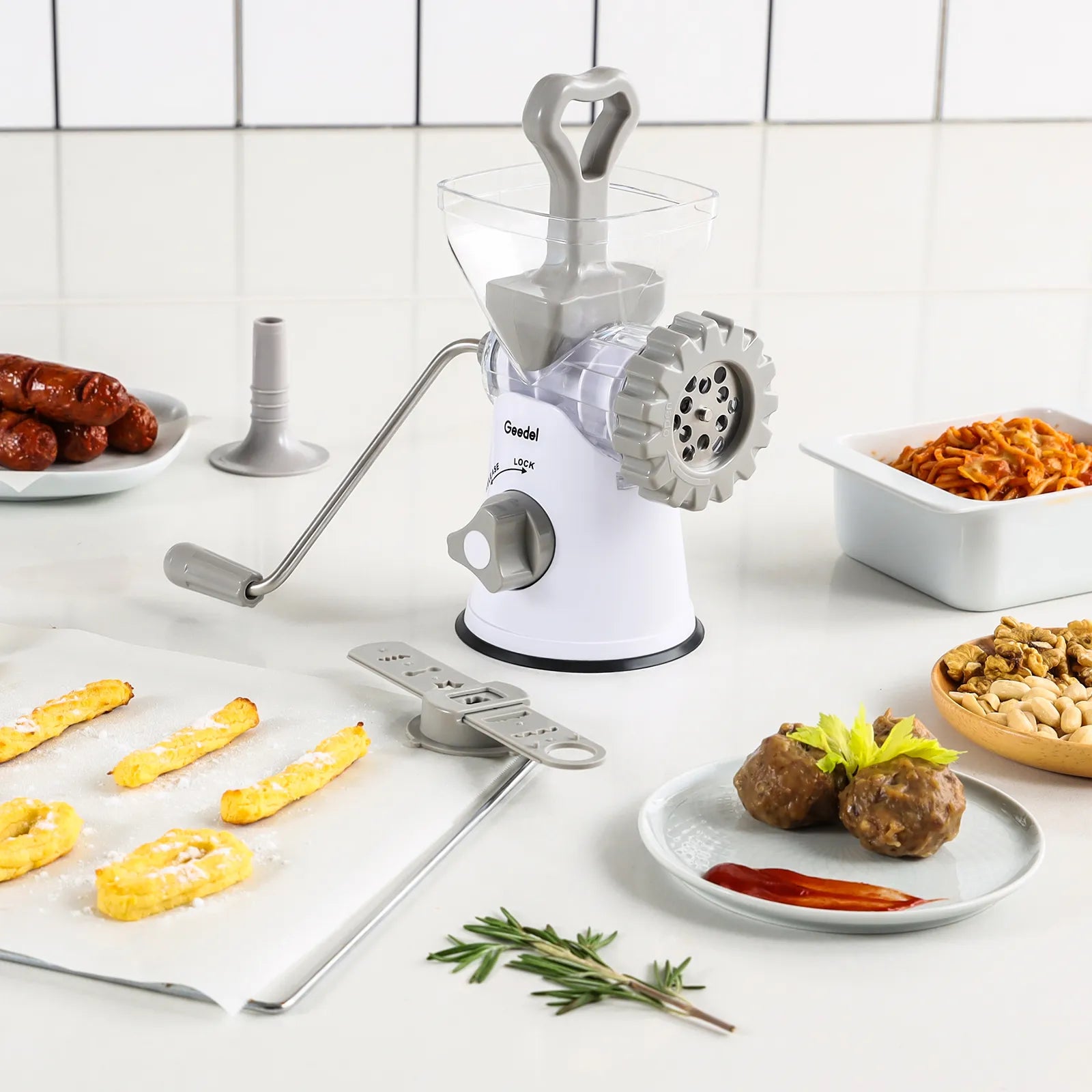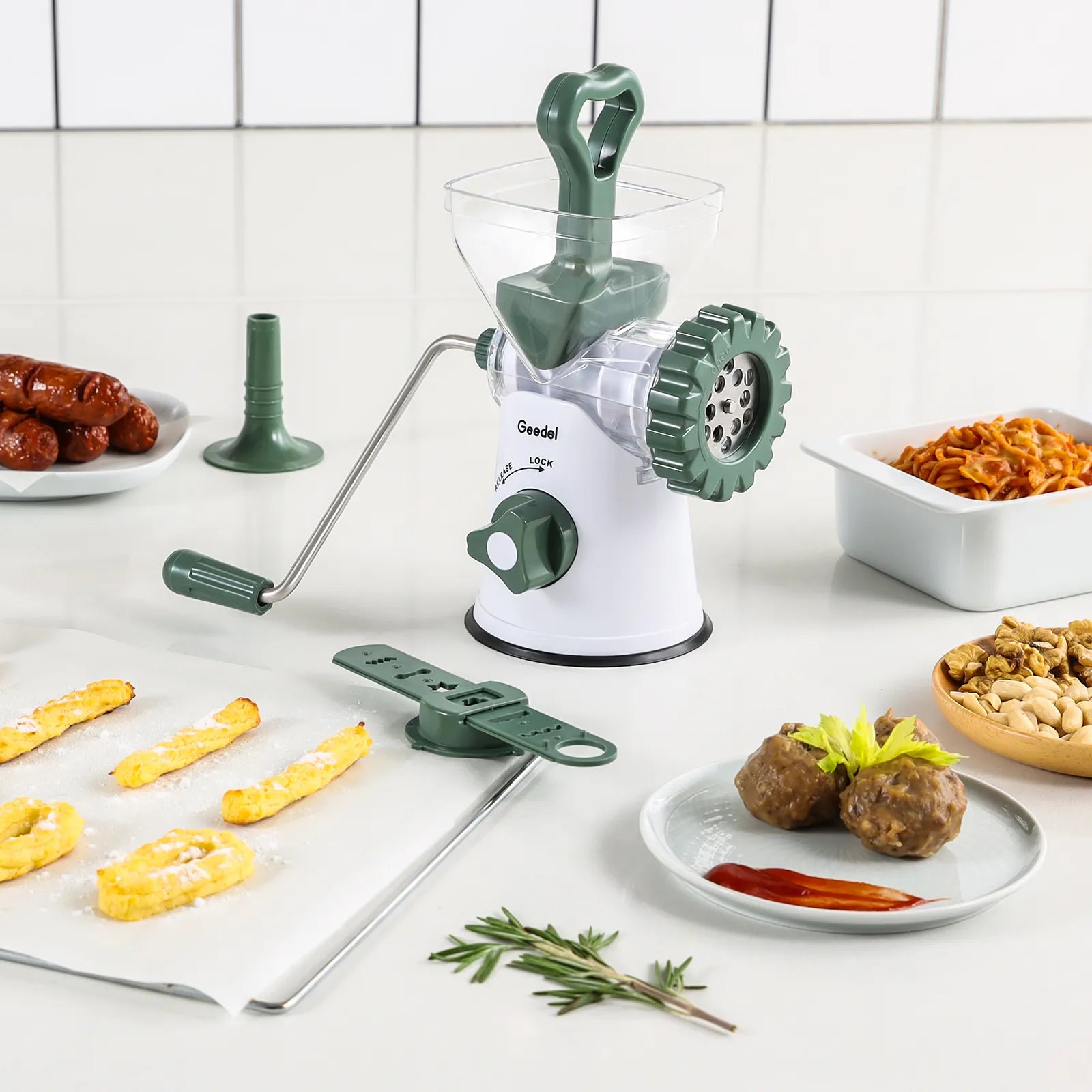 Seguro y fácilEmpujador de alimentos y mango desmontable para preparación familiar con picadora de carne manual Geedel.