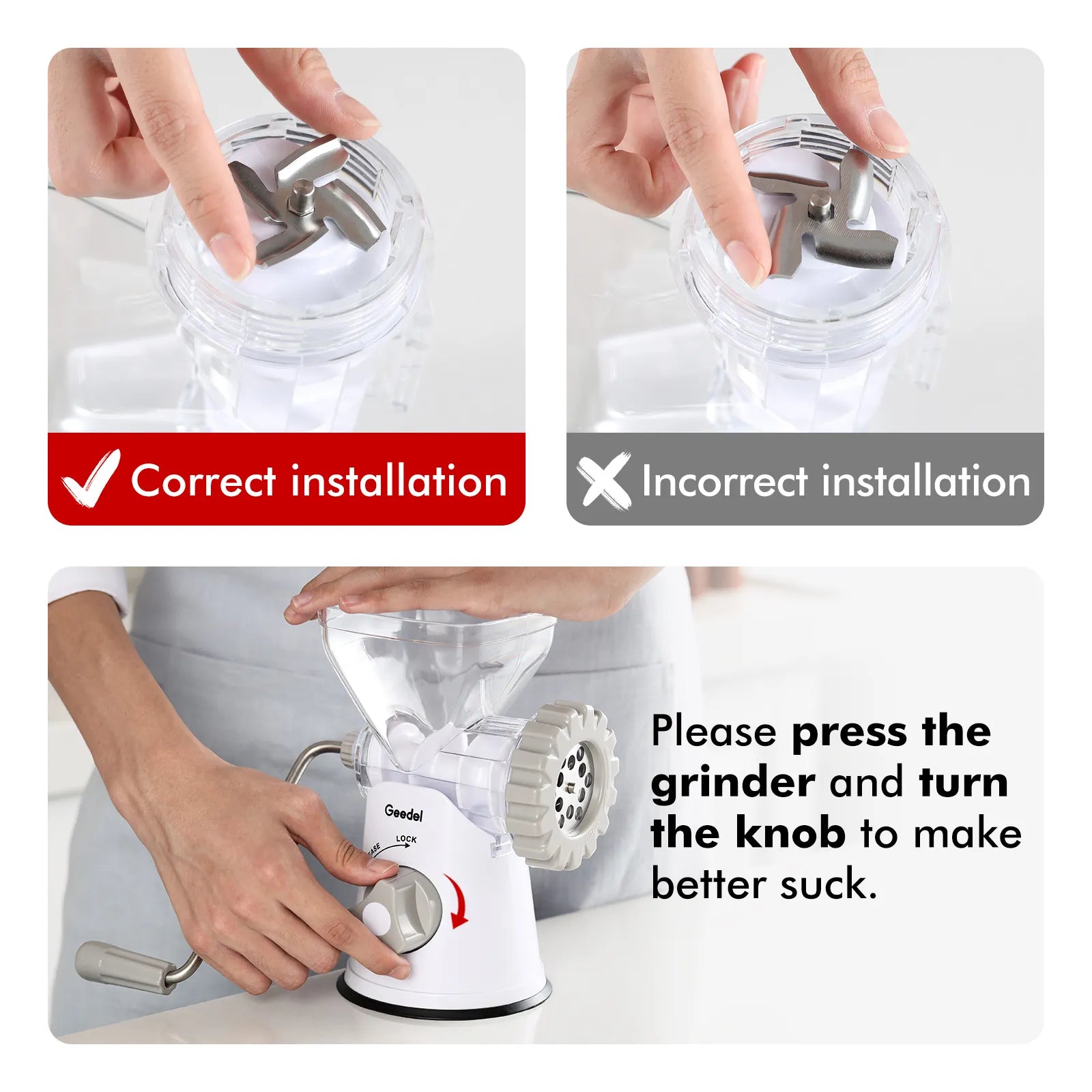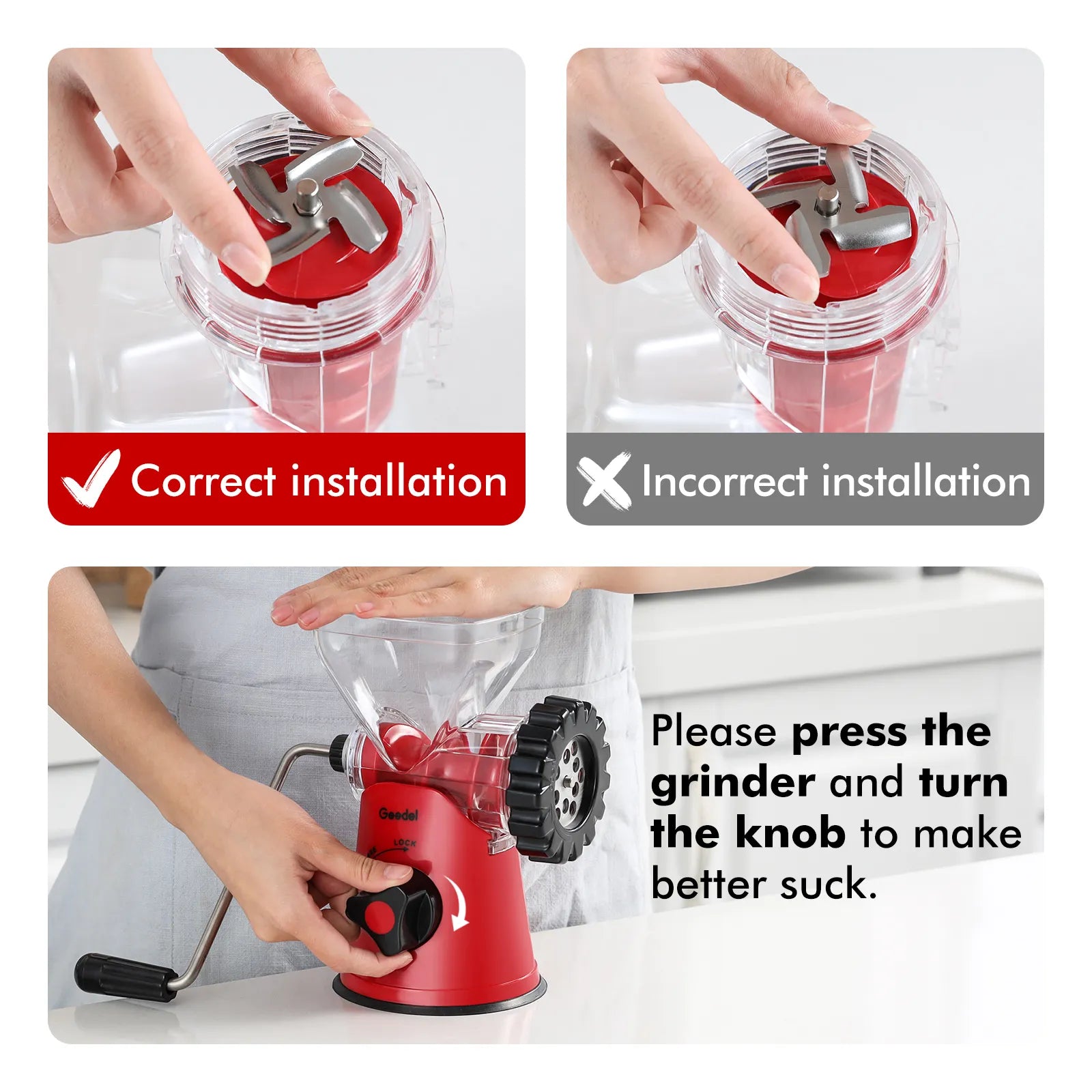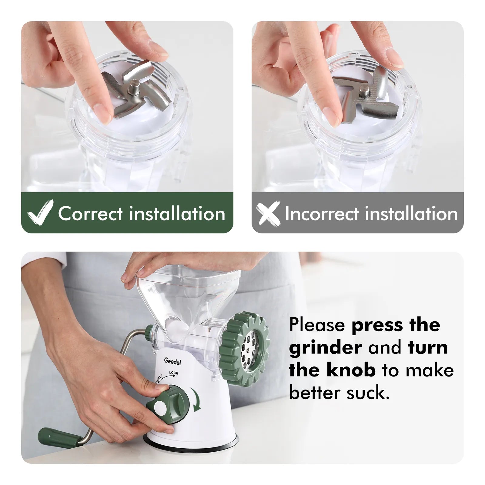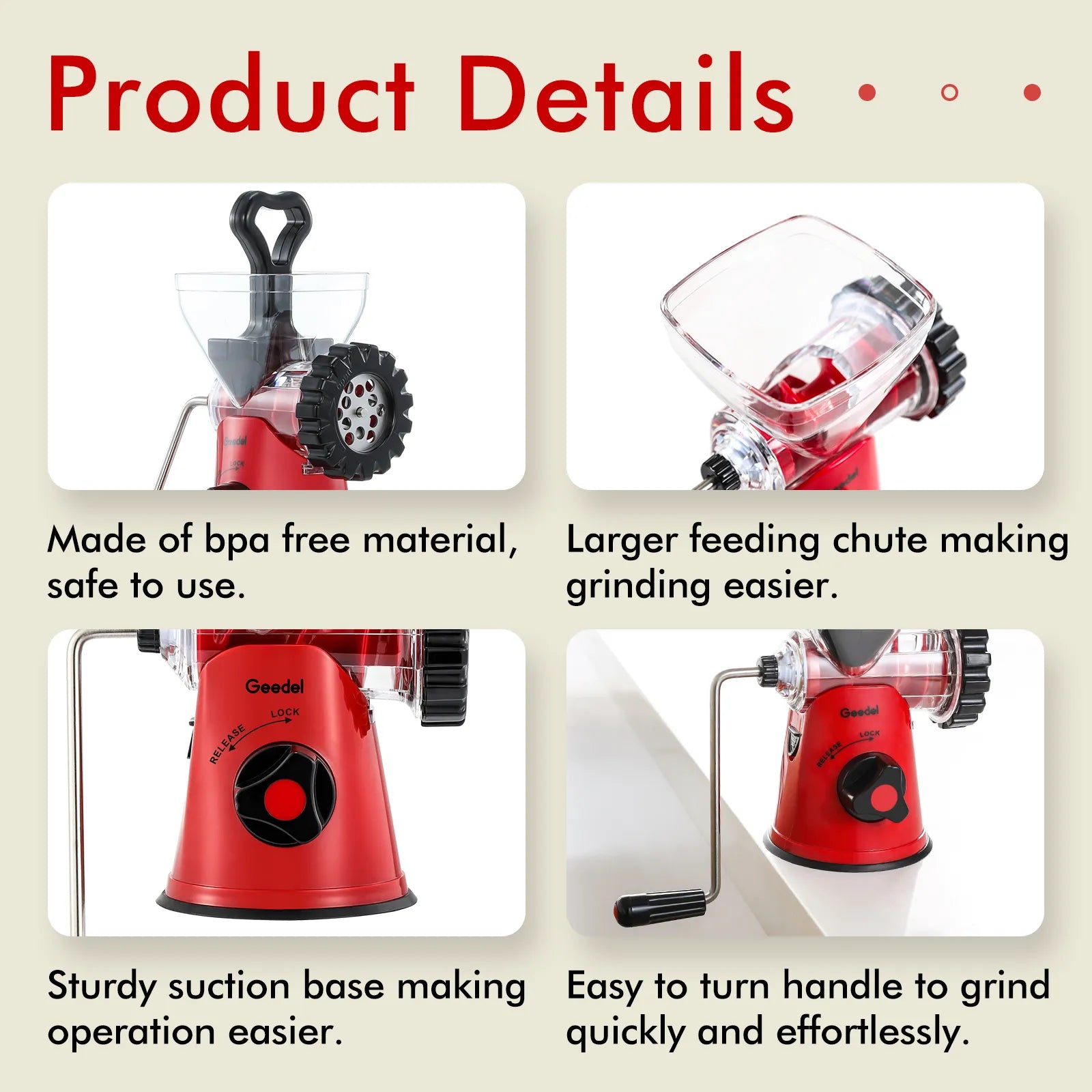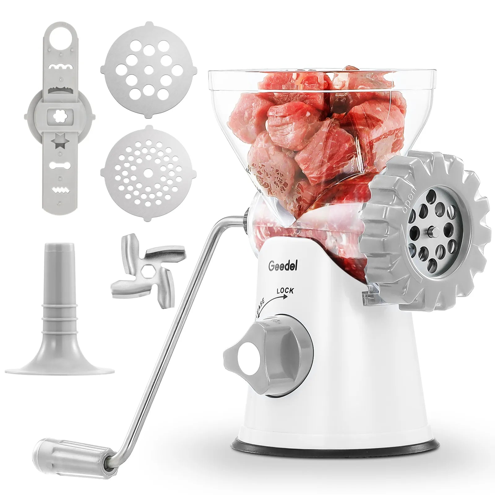 Seguro y fácilEmpujador de alimentos y mango desmontable para preparación familiar con picadora de carne manual Geedel.